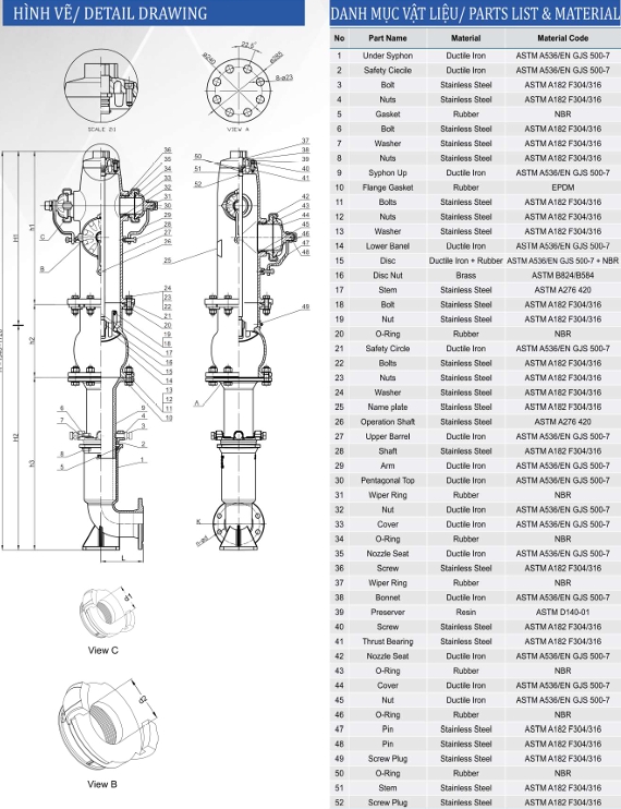 Sử dụng gang cầu cho độ bền và thời gian sử dụng cao hơn. Sơn phủ Epoxy cả bên trong lẫn bên ngoài, chống được tia cực tím, không bị phai màu và gỉ sét theo thời gian.