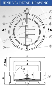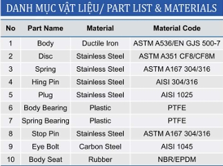 Van Một Chiều Bướm với thân bằng gang cầu, có đĩa bằng Inox, dùng để ngăn dòng chảy ngược, hoạt động êm ái, kết nối dạng kẹp đơn giản, chi phí thấp.